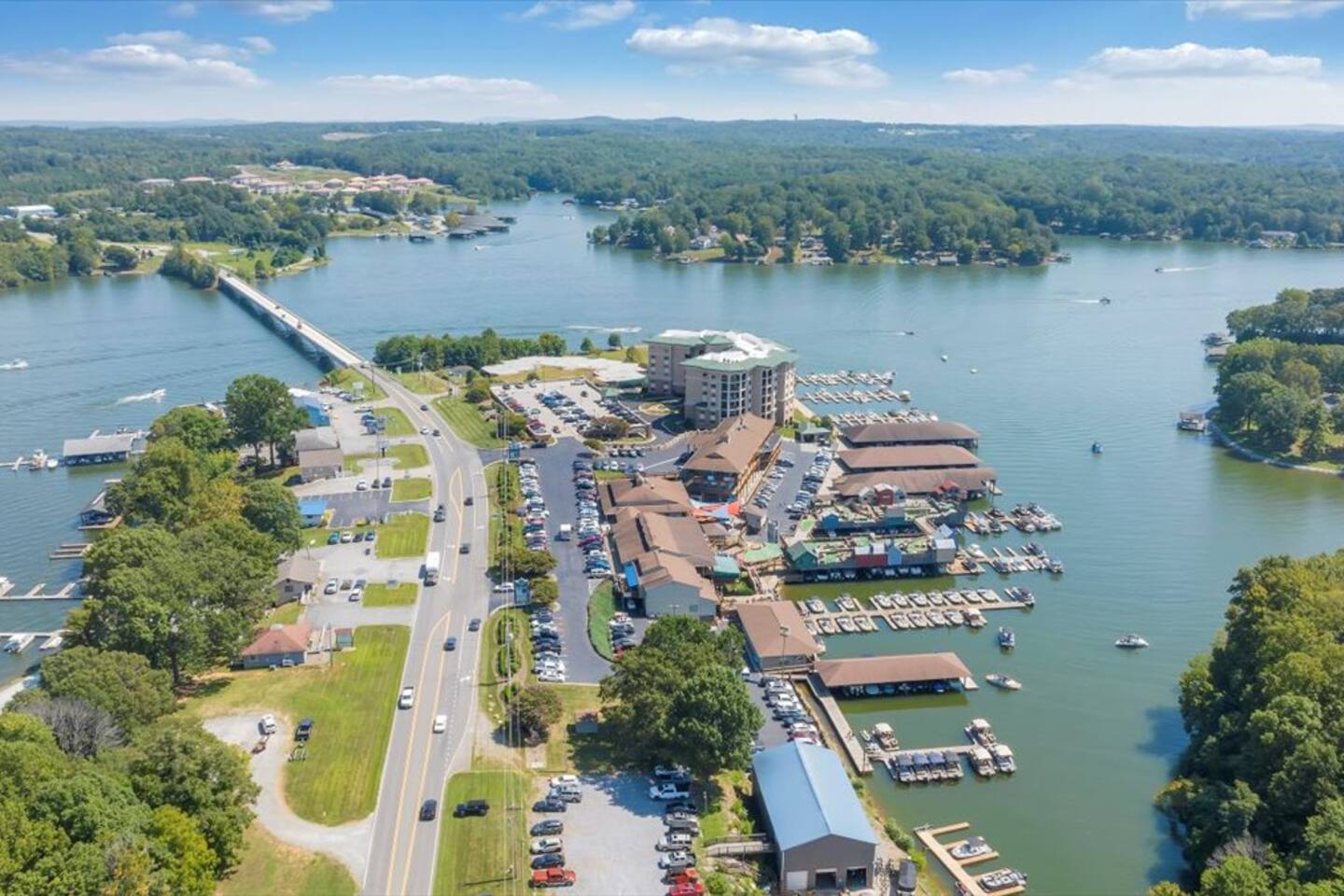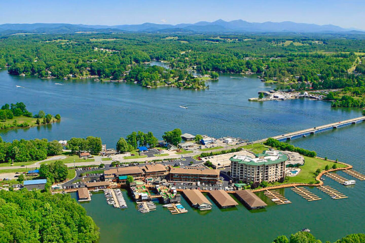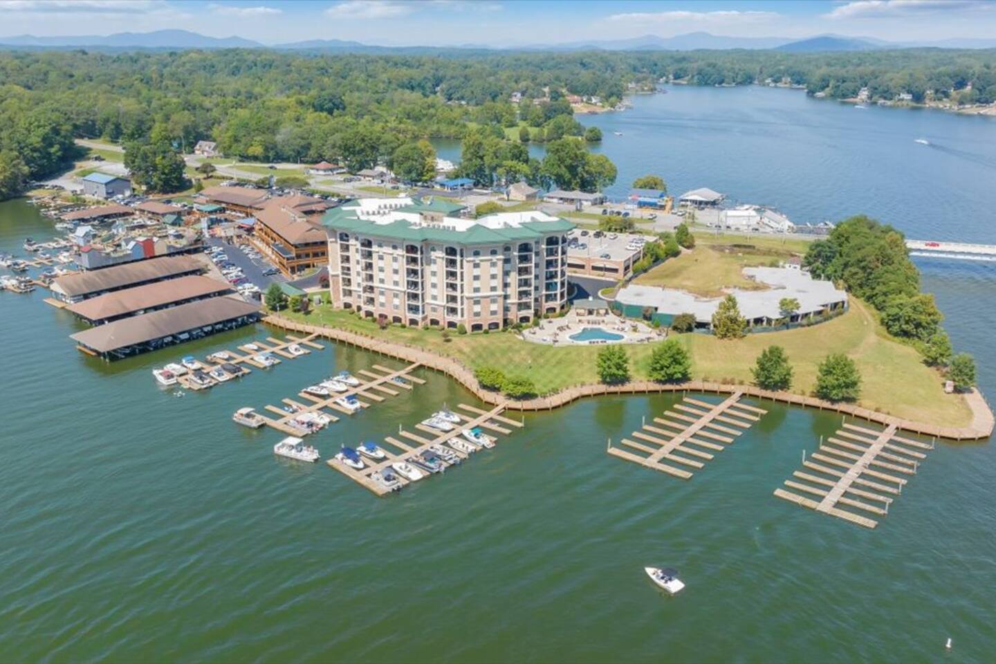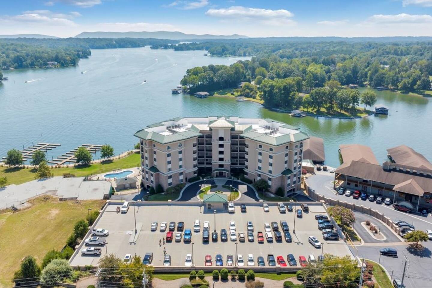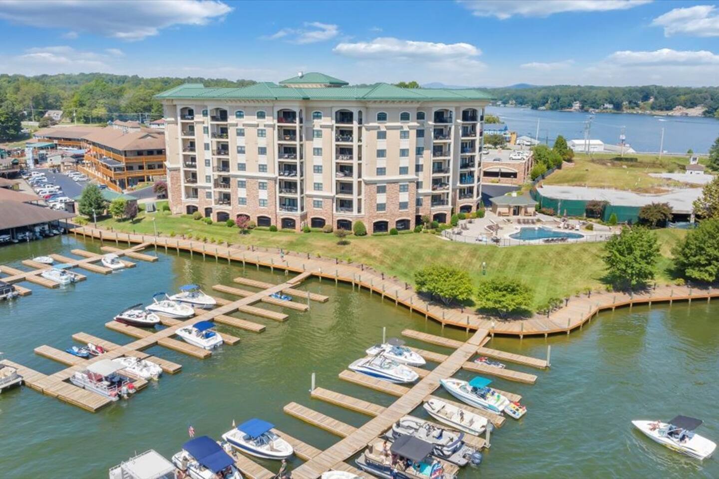 One of the only "park and never have to leave spots" on Smith Mountain Lake. With multiple restaurants, arcade, ice cream, shopping, and boat rentals onsite, your vacation begins as soon as you arrive. Please note that grocery delivery is also available via Instacart.